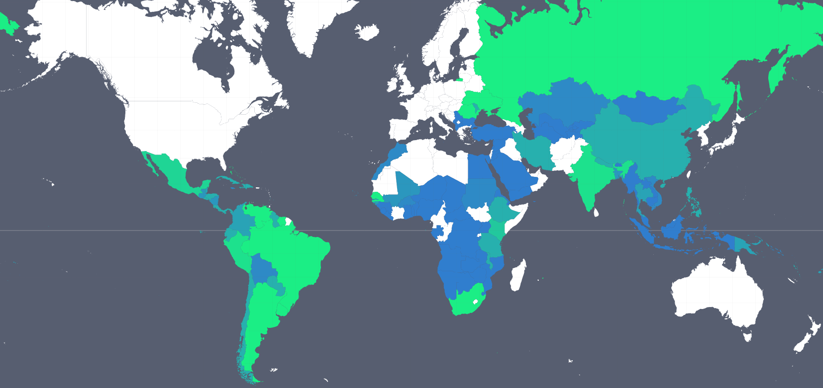 Then we explored the data to visualize them in different templates. The following world map describes the coverage of drought/water scarcity hazard by the public sector (blue) and the insurance industry (green).